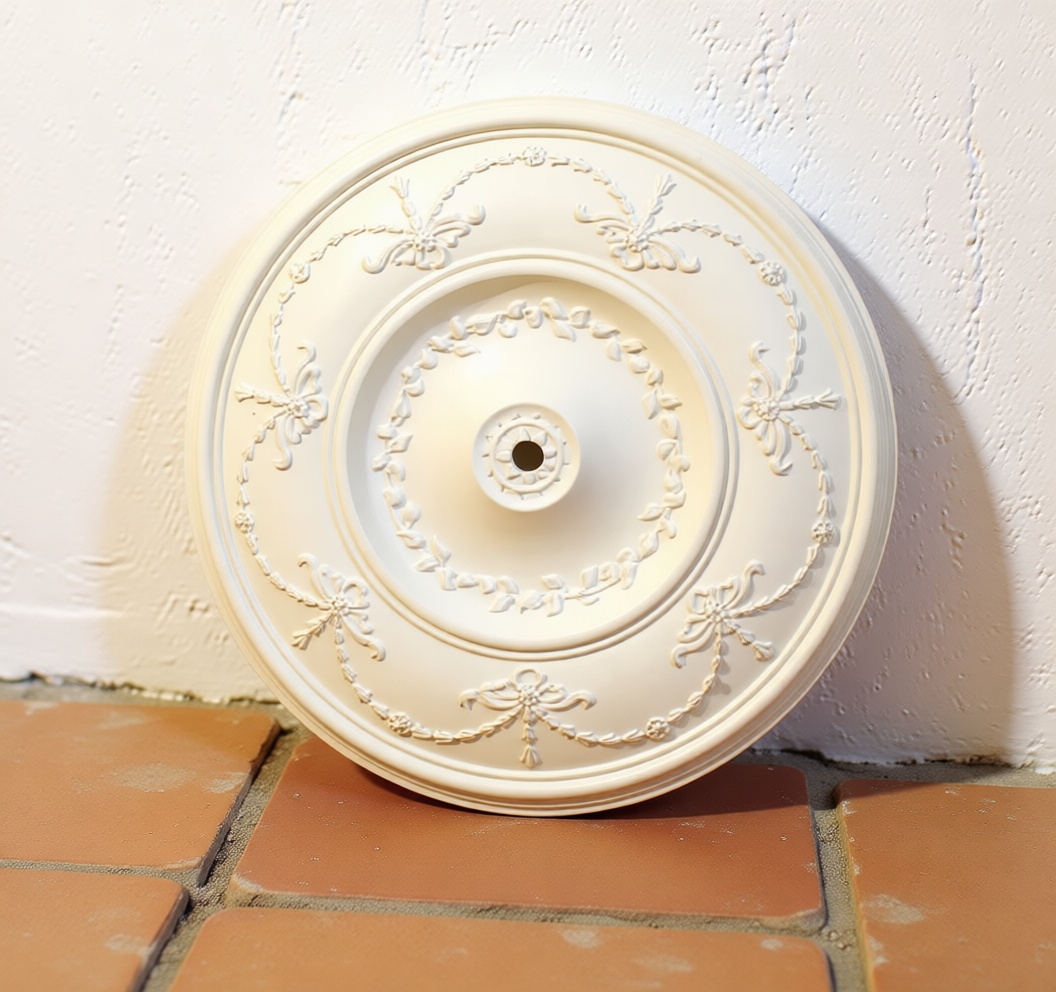 Ceiling Rose 1032 features a modern transitional design defined by clean stepped ring geometry and minimal ornamentation. The layered circular form creates subtle depth while maintaining a restrained and contemporary aesthetic. Its simplicity allows it to integrate seamlessly into both modern and transitional interiors, offering a refined ceiling detail without visual clutter.