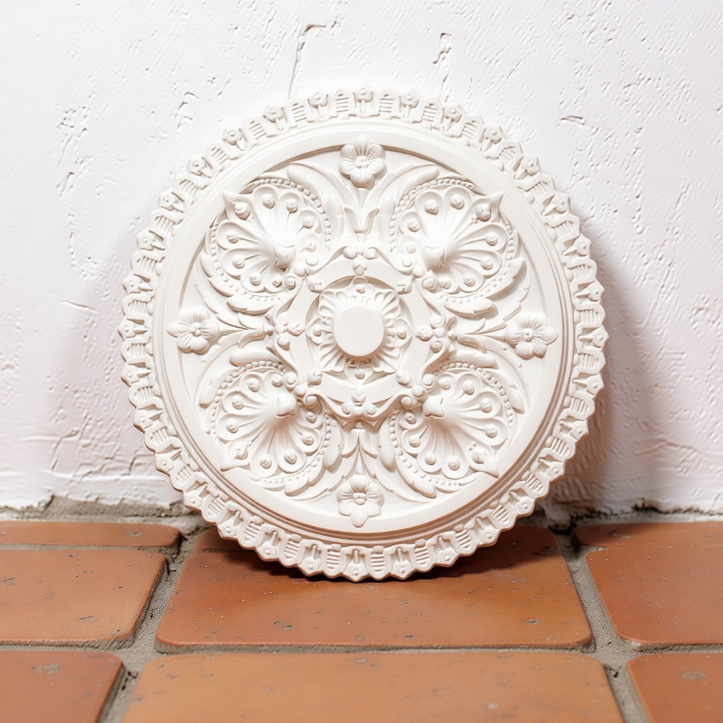 Ceiling Rose 1067 reflects the ornamental richness of Victorian design, characterized by its layered floral composition and intricate detailing. The design builds depth through multiple layers of floral motifs, creating a visually engaging and textured surface.