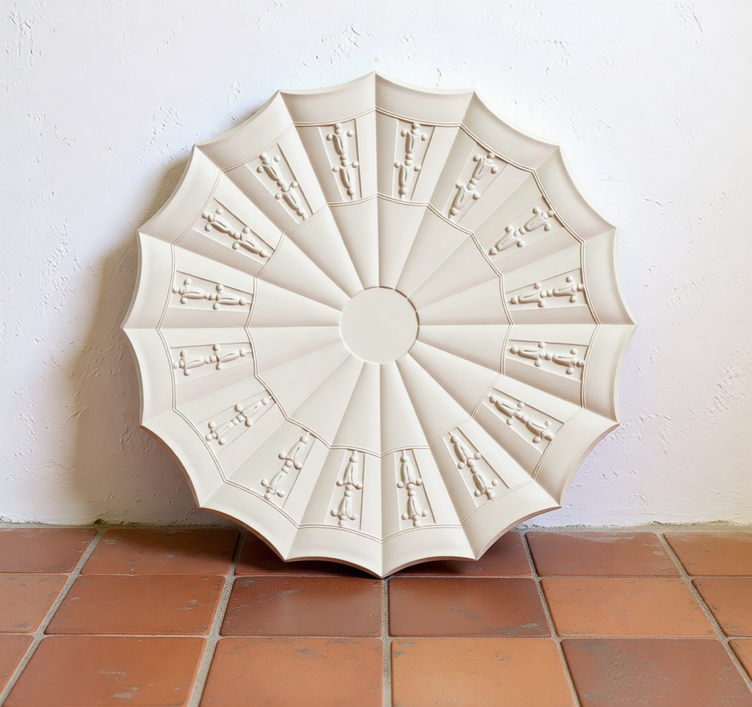 Ceiling Rose 1106 reflects the defining qualities of Early Art Deco design, where geometry and symmetry take precedence over heavy ornamentation. The composition is built around strong radial lines and stepped segments that create a structured, architectural presence.